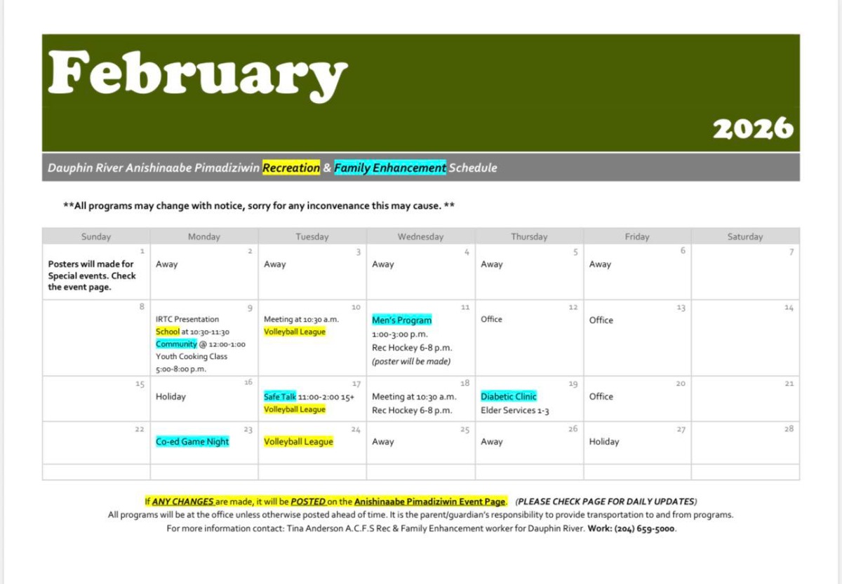 Anishinaabe Pimadiziwin Dauphin River Recreation & Family Enhancement Schedule
