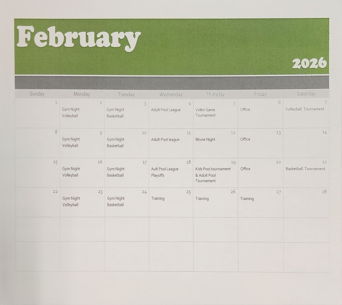 February 2026 Rec Schedule
